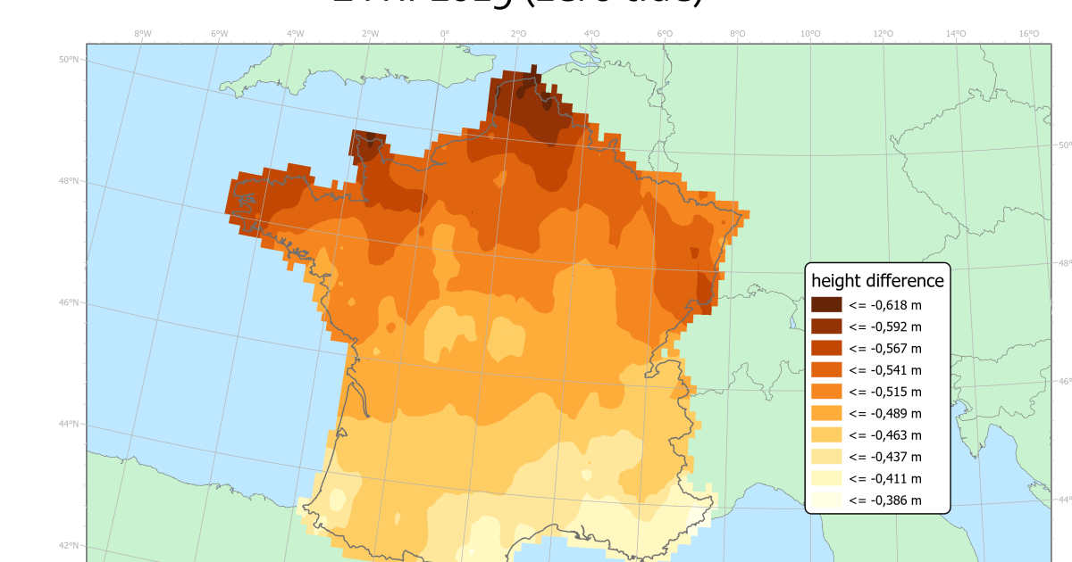 Cette mise à jour inclut l’implémentation de deux nouvelles grilles de transformation spécifiques, permettant de transformer les altitudes EVRF2019, en marée nulle comme en marée moyenne, en NGF-IGN 1969 (France continentale), avec une précision de 5 cm en écart-type. Développées par le BKG (Institut fédéral allemand de géodésie et de cartographie), ces grilles assurent des transformations précises, fiables et conformes aux exigences européennes, renforçant ainsi l’interopérabilité des données altimétriques.