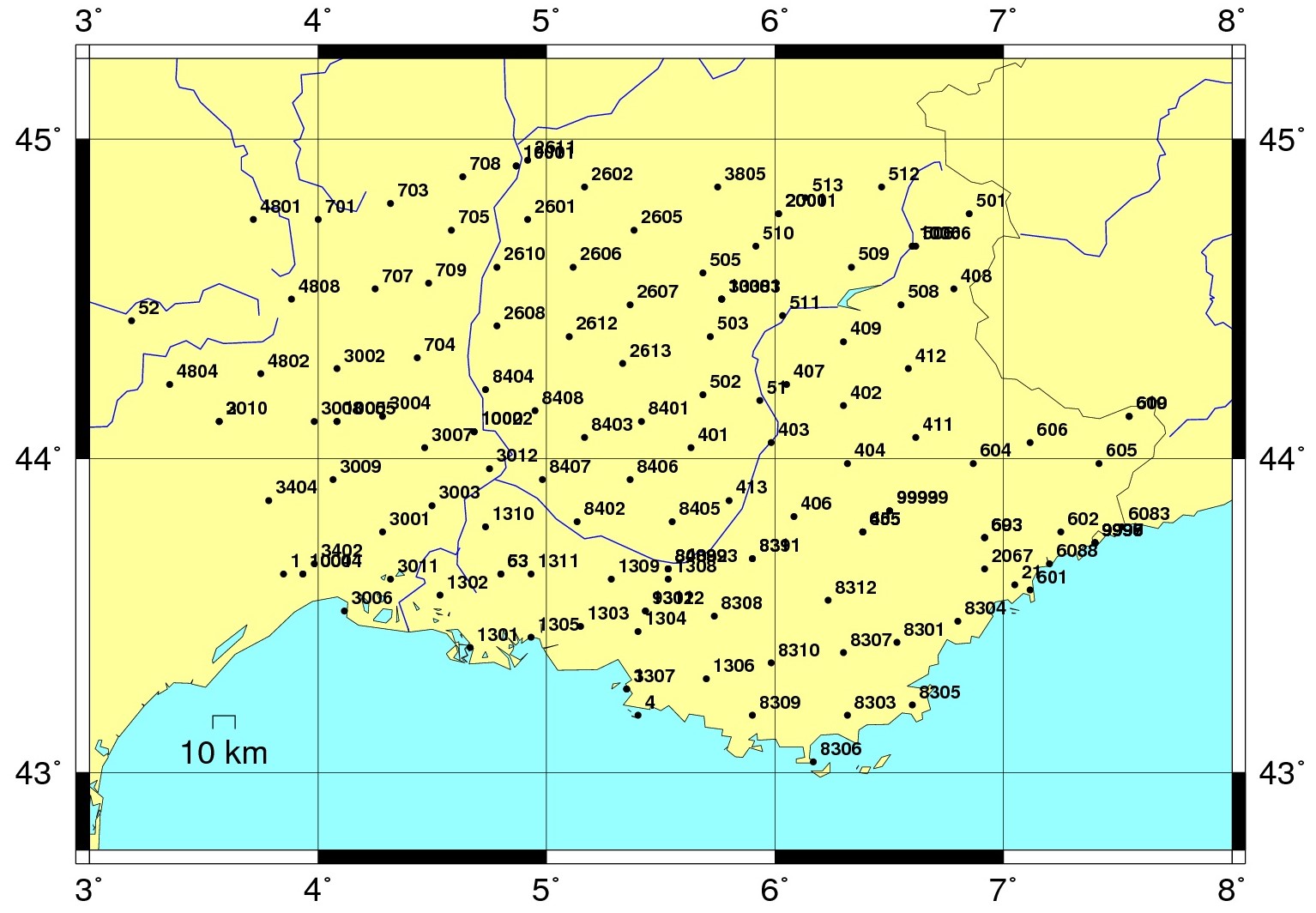 En 2010 et 2011, l'IGN a concentré ses efforts sur les mesures gravimétriques absolues, en Corse et sur le littoral sud-est de la France, complétées par quelques mesures relatives dans la région de Marseille.