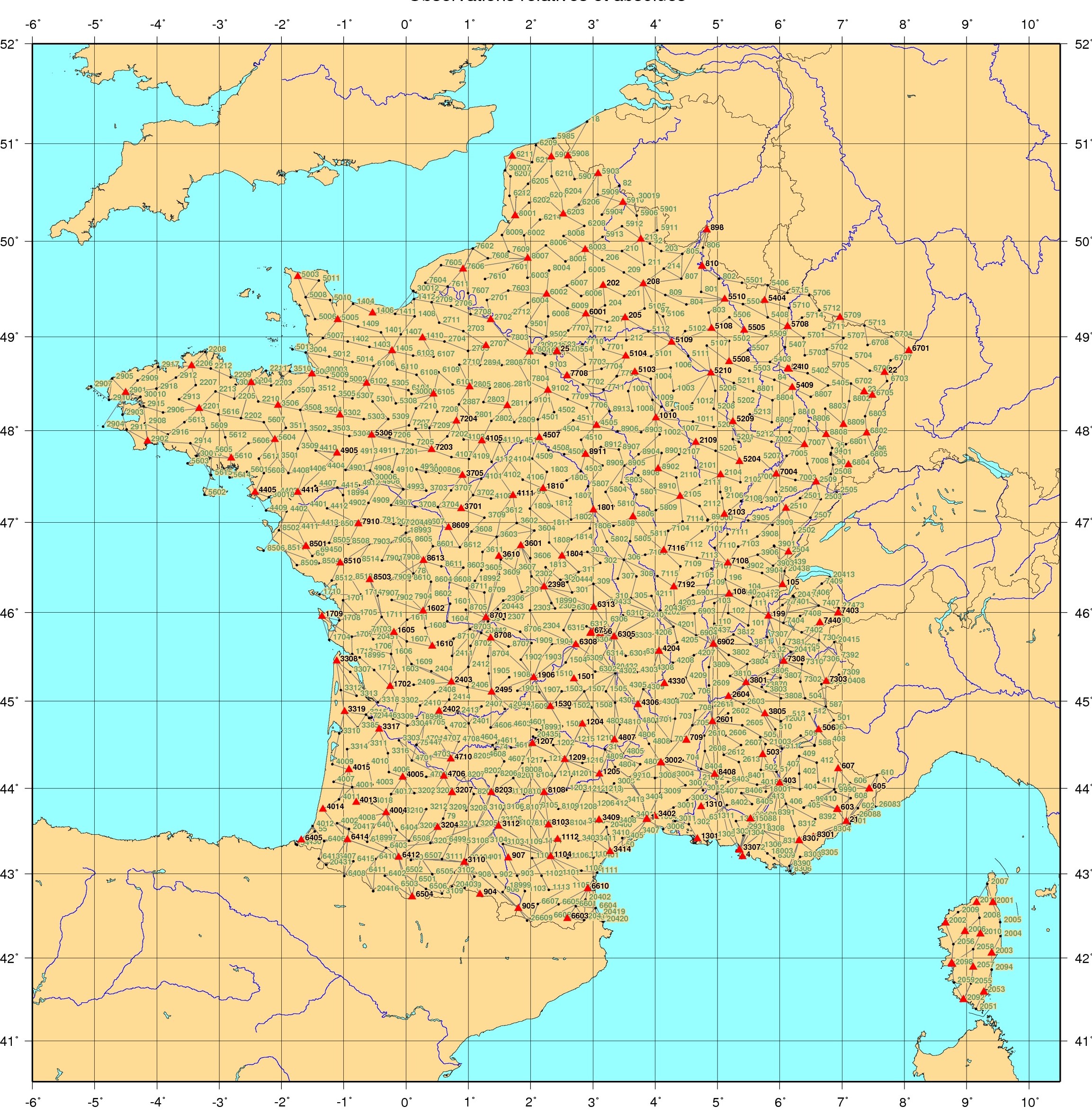 En 2012, la campagne de mesures a consisté à effectuer des reprises sur toute la France métropolitaine, suite aux calculs de compensation finale de 2011 qui avaient révélé de forts résidus sur certains points.